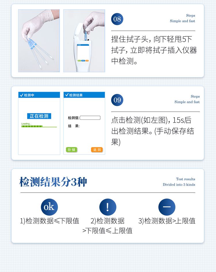 實用性 —— 可根據(jù)環(huán)境檢測需求設(shè)定上下限值,做到數(shù)據(jù)快速評估預(yù)警,表面潔凈度快速篩查。