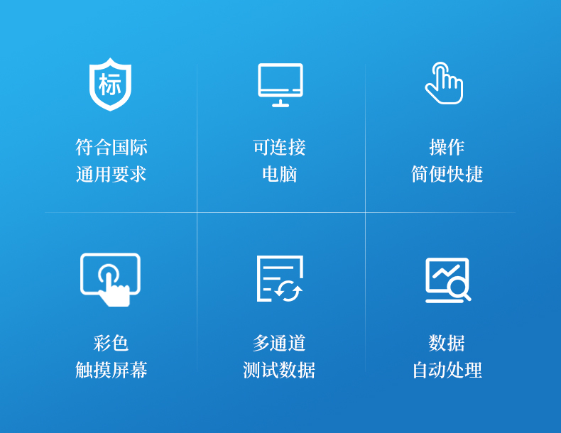 ●彩色觸摸大屏幕操作:中文輸入,操作簡便快捷,功能強(qiáng)大。可同時顯示多通道測試數(shù)據(jù)