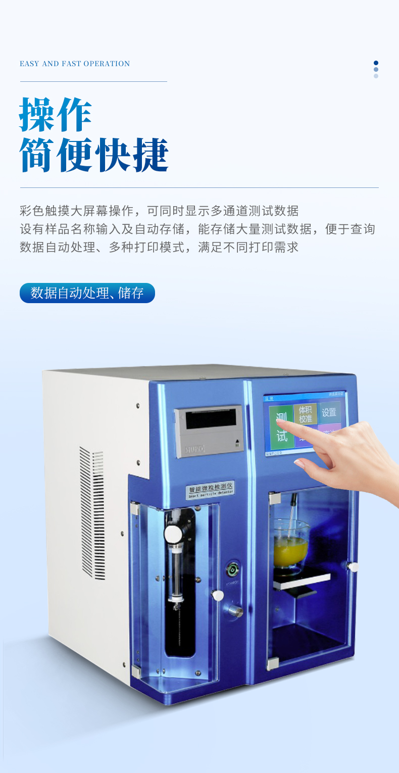 ●設(shè)有小容量注射液(小針劑)專用測試程序,可根據(jù)小針劑的規(guī)格進(jìn)樣,并在測試完成后自動轉(zhuǎn)換成容器微粒的大小及數(shù)量,符合《中國藥典》及國際通用要求。