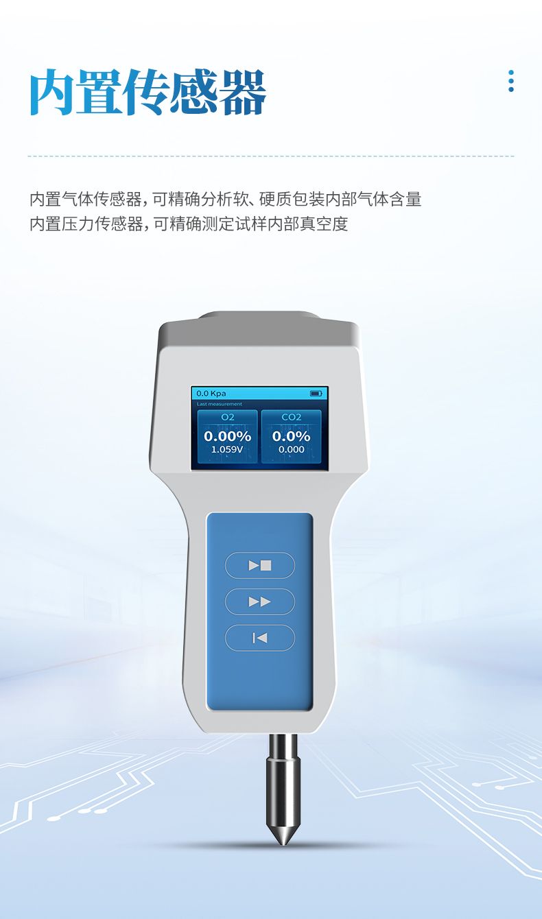 3.內(nèi)置氣體傳感器,可精確分析軟、硬質(zhì)包裝內(nèi)部氣體含量;
