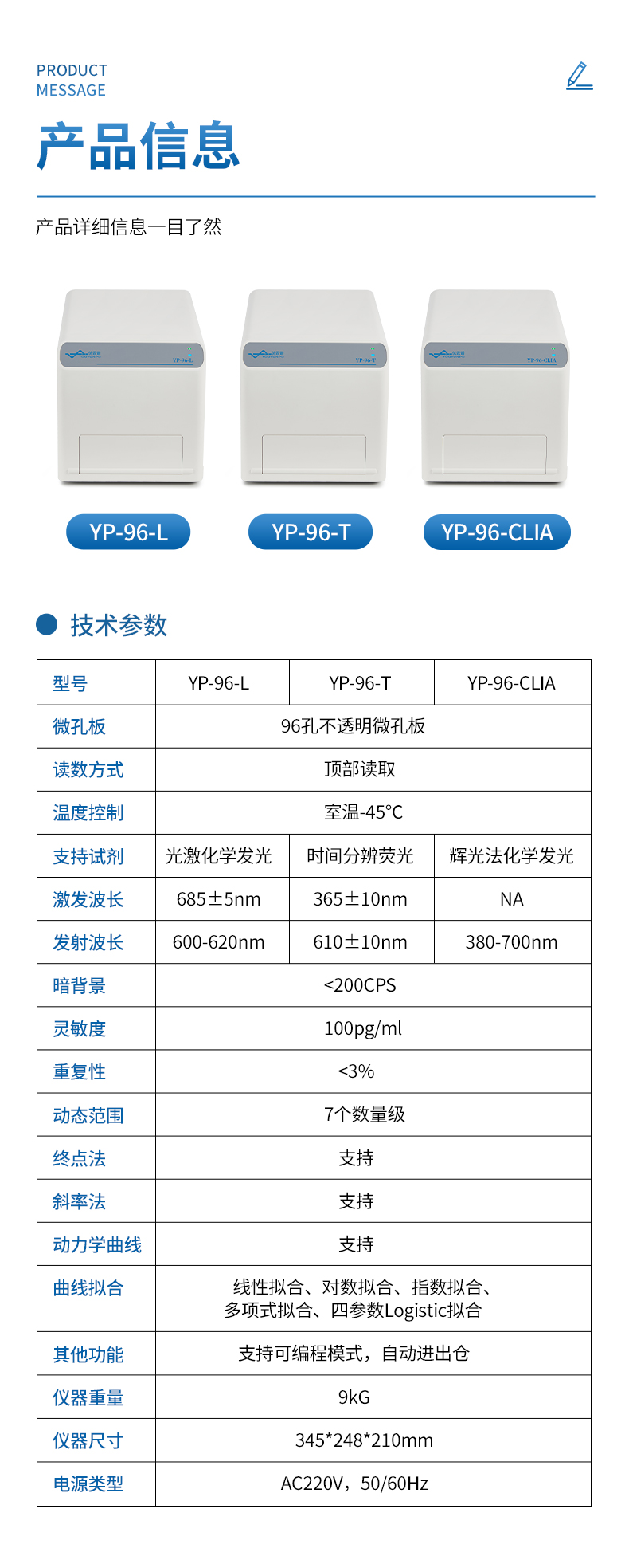 | 型號 | YP-96-L | YP-96-T | YP-96-CLIA |