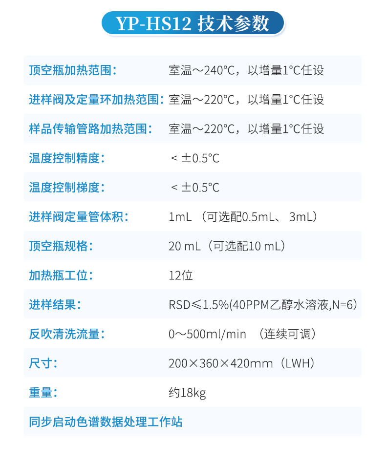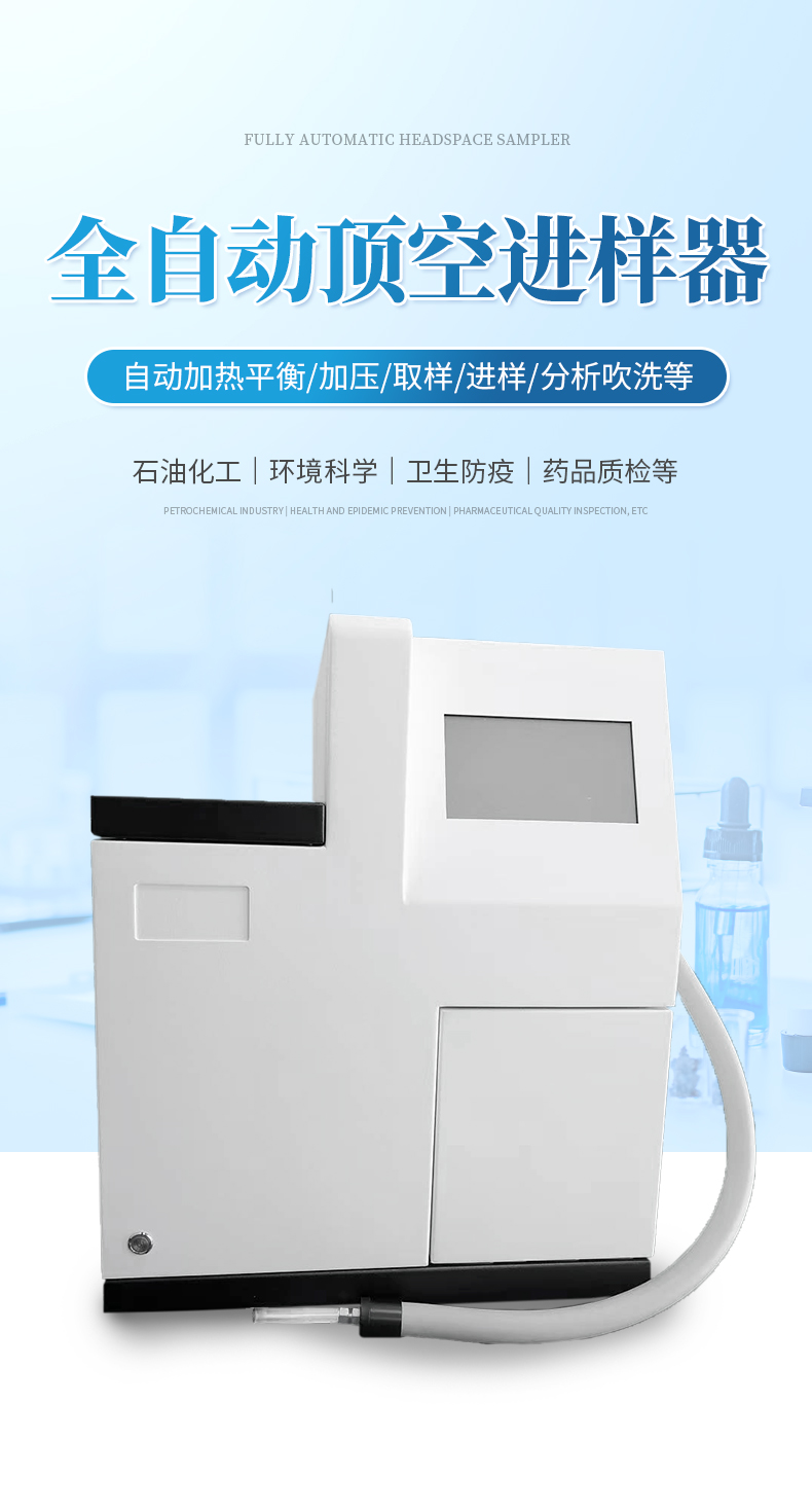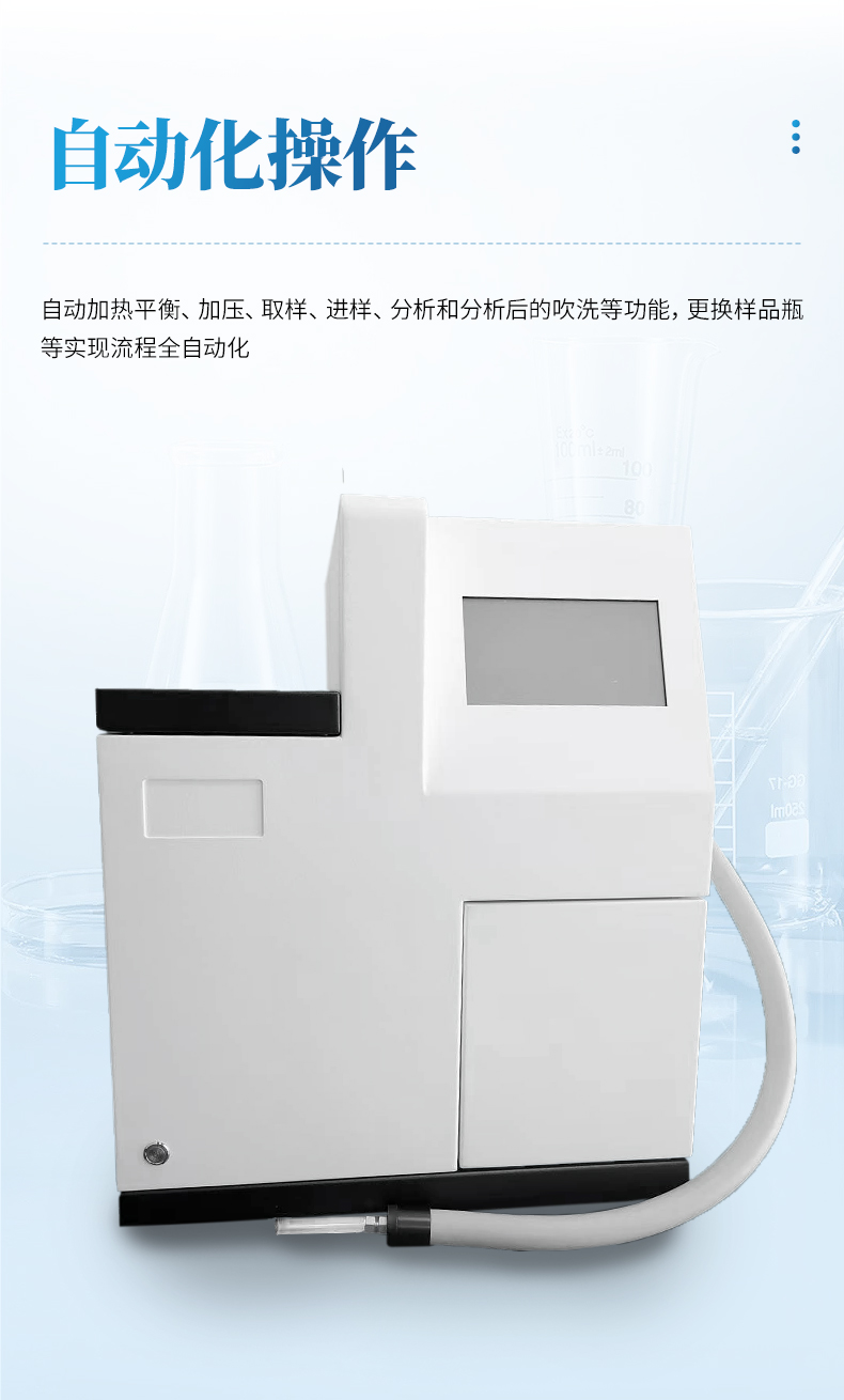 ▲全中文7寸液晶顯示,操作簡單,一鍵啟動。自動加熱平衡、加壓、取樣、進樣、分析和分析后的吹洗等功能,更換樣品瓶等實現流程全自動化。
