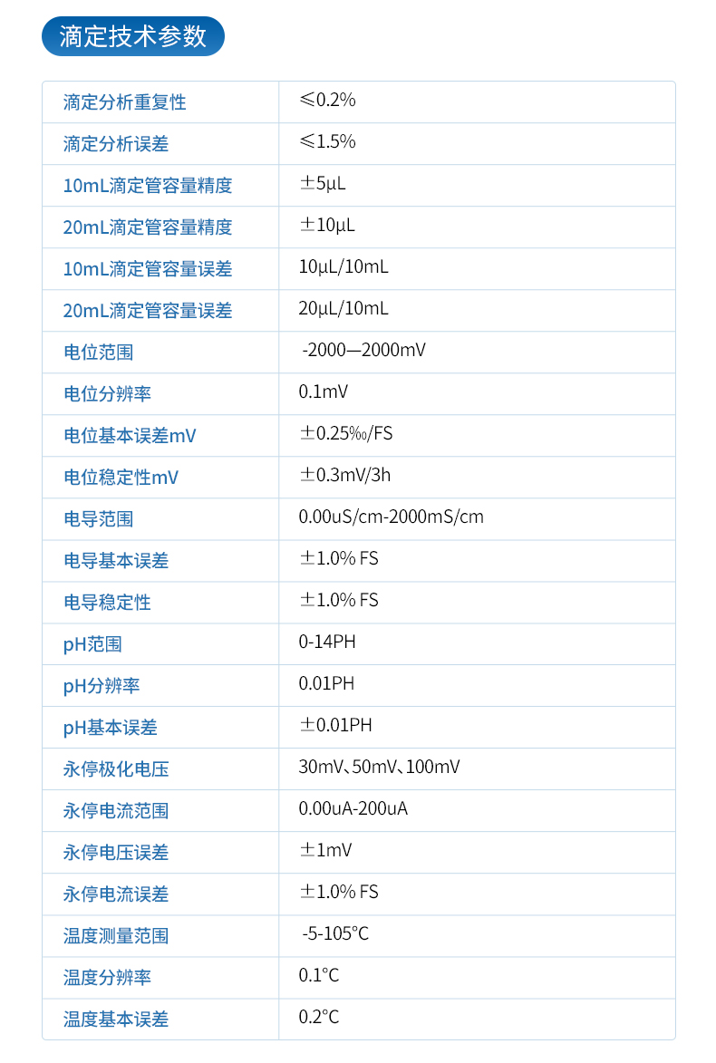 滴定分析重復性:≤0.2%