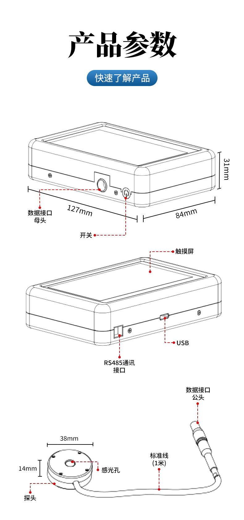 | 探頭尺寸: | 圓形 φ38mm 厚14mm |