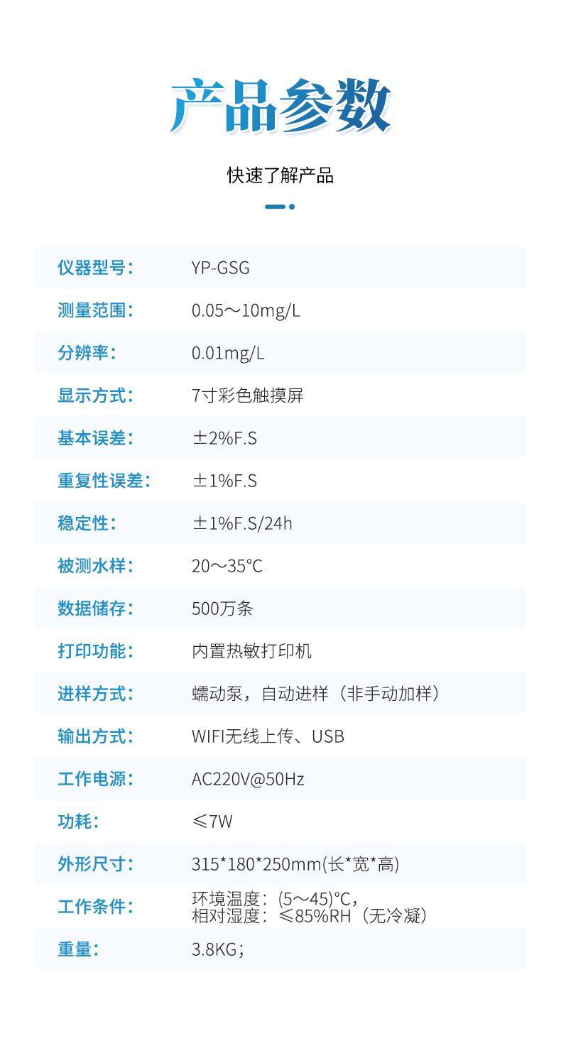 【產品簡介】測量范圍:0.05~10mg/L;基本誤差:±2%F.S