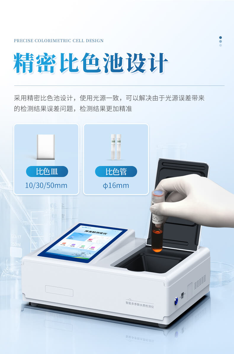 3、采用精密比色池設(shè)計,使用光源一致,可以解決由于光源誤差帶來的檢測結(jié)果誤差問題,檢測結(jié)果更加精準(zhǔn)。