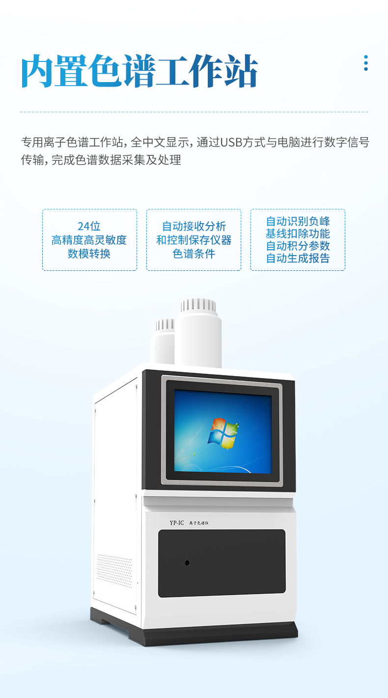全新一代YP-IC+離子色譜儀,采用12.1吋純平工控電腦一體機設計(用戶不需要配電腦),實時顯示儀器運行參數(shù)和狀態(tài);一鍵啟動電動閥進樣,一鍵完成儀器開關機、維護等操作,一鍵調閱儀器操作教程,方便快捷。