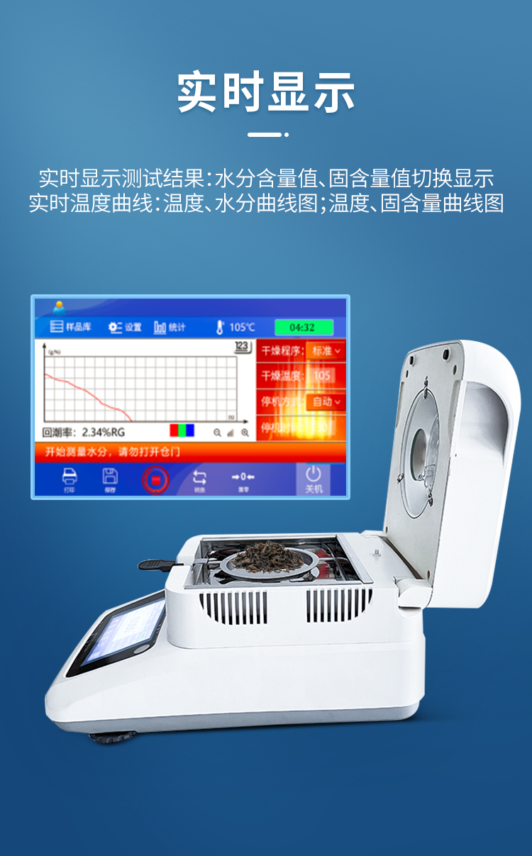 該系列快速水分測定儀應用了國際烘箱干燥法原理,測定結果與烘箱法水分測定具有良好的一致性,工作效率卻遠遠高于烘箱法水分測定,一般樣品只需要幾分鐘即可測量完畢,因此受到廣大用戶的青睞與好評。