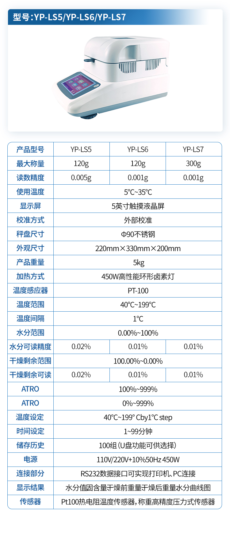 | 水分可讀精度 Moisturereadability | 0.0002 | 0.0002 | 0.0001 | 0.0001 |