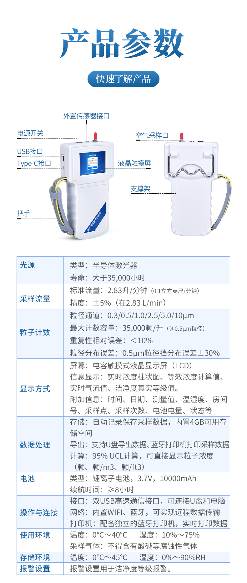 粒徑通道:0.3μm、0.5μm、1.0μm、2.5μm、5.0μm、10μm