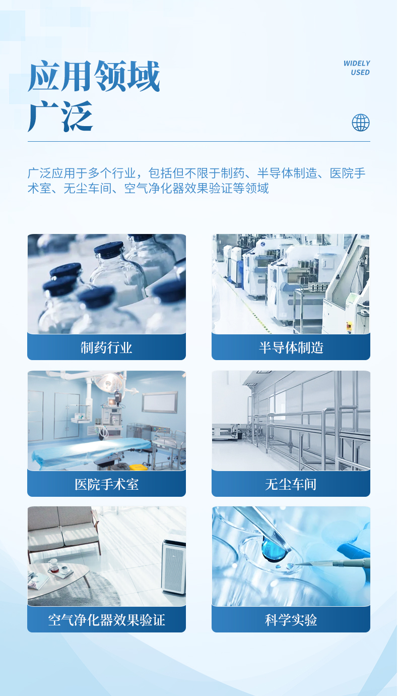 手持塵埃粒子計數器是一種便攜式的檢測設備,專門用于快速測量空氣中的塵埃、顆粒物以及其他微小顆粒的數量和大小分布。這類儀器廣泛應用于多個行業,包括但不限于制藥、半導體制造、醫院手術室、無塵車間、空氣凈化器效果驗證等領域。