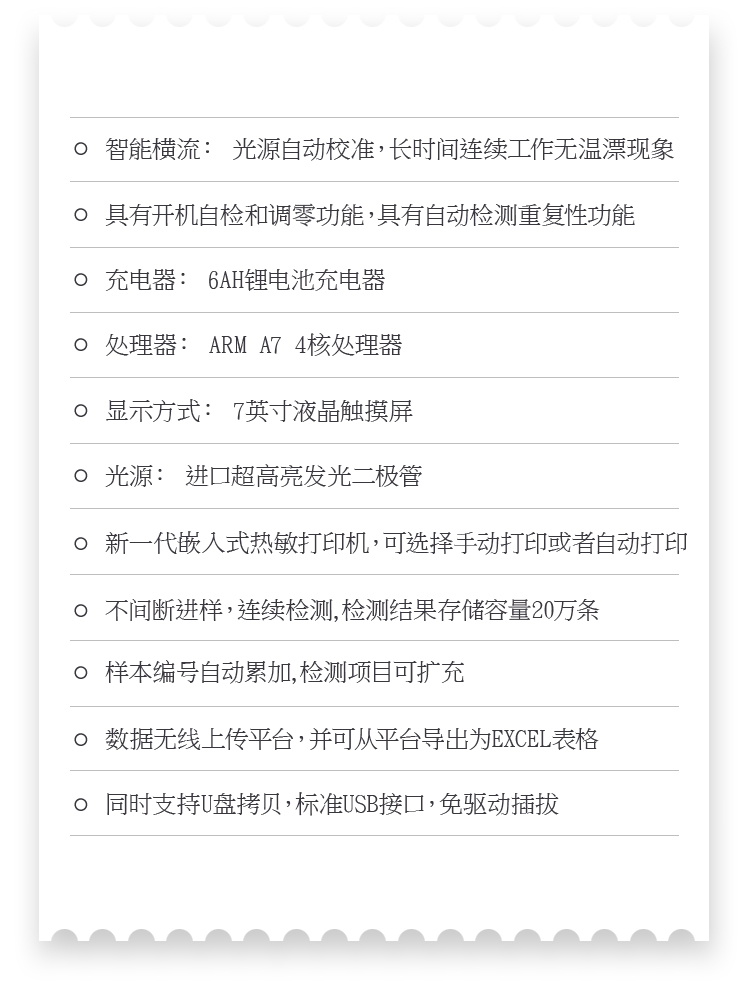 1、安卓智能操作系統,采用更加高效和人性化操作,儀器具有網線連接、wifi聯網上傳、GPRS無線遠傳功能,快速上傳數據。
