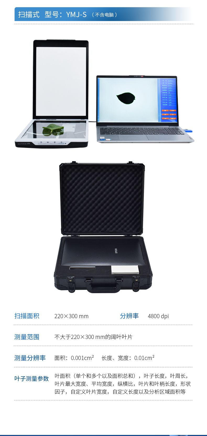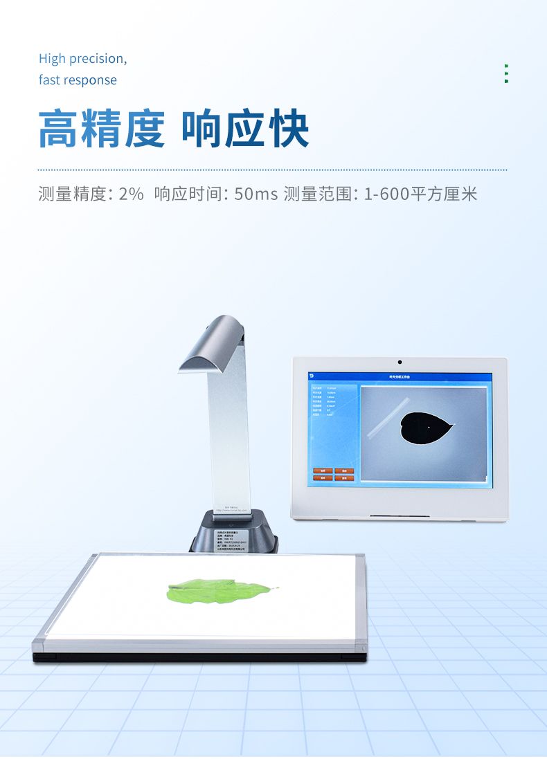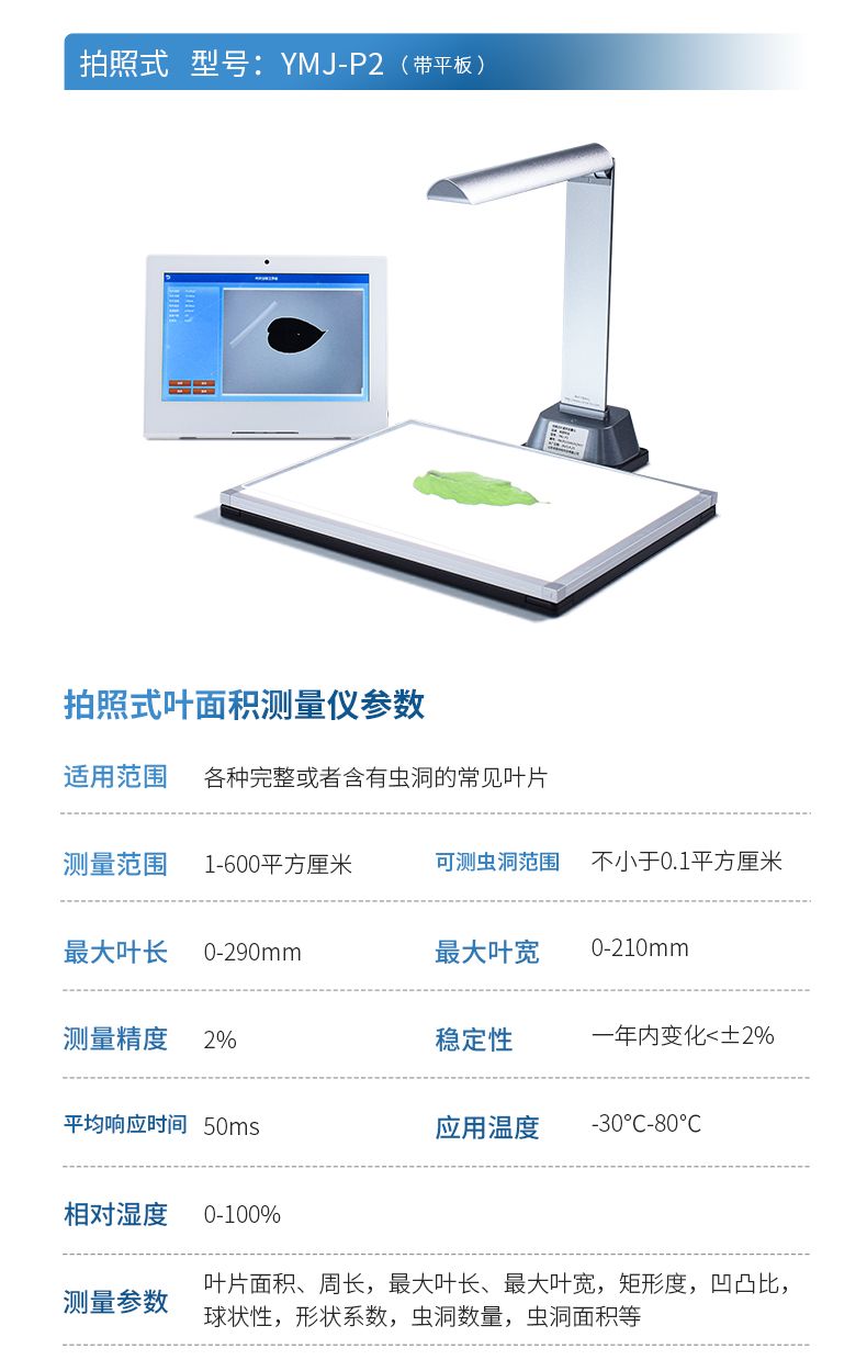 YMJ-P2拍照式葉面積儀(平板版)由圖像采集設備和圖像處理軟件組成,采用本公司新開發的圖像識別軟件,根據葉片輪廓特征提取、圖形實物轉換、邊緣檢測等技術,能夠形象并快速得到所測葉片面積、周長、蟲洞數量等參數,并且可以將葉片分段測量,系統會自動合并兩張圖片并綜合分析各參數。相比傳統的葉面積,具有測量更快速簡便、結果更形象客觀、數據多樣并大大減少了人為操作帶來的誤差。