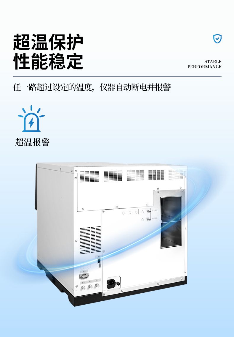 ● 載氣具有壓力保護功能,氣體壓力低0.4mpa時儀器自動切斷電源有效保護色譜柱使用安全。