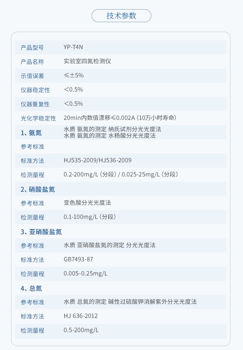 檢測項目:氨氮,硝酸鹽氮,亞硝酸鹽氮、總氮;
