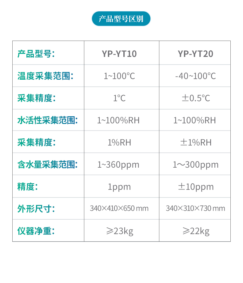 l水分(選配):水活性采集:1~100%RH;精度:±1%RH