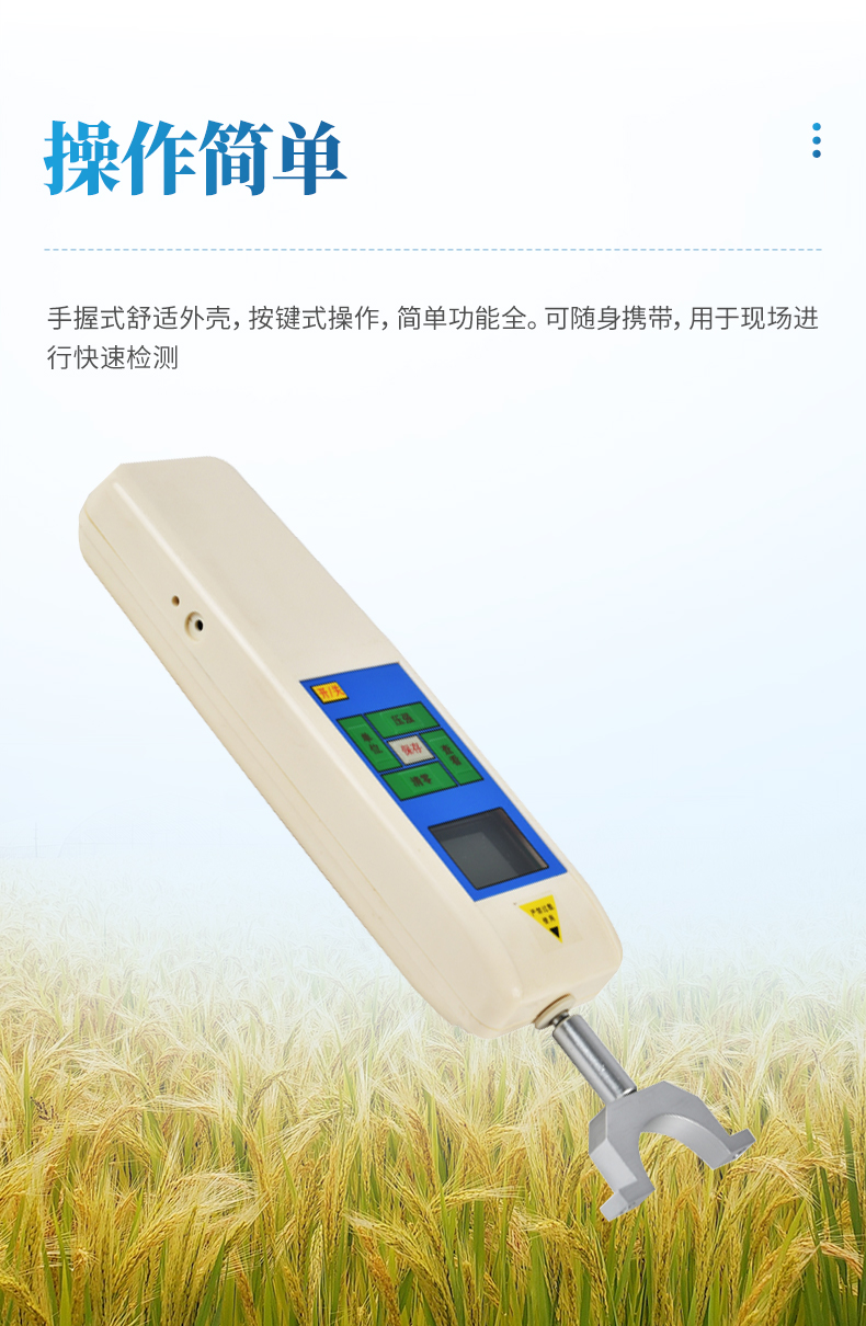 植物抗倒伏測定儀是決定農作物抗倒伏能力的一個關鍵因素,玉米,高梁、煙草等的植物的倒伏給農作物的機械收割造成很大的困難。造成大量的浪費。另外,農作物的倒伏導致光照不充分,使其生產量受到極大的限制。在作物生長的各個階段對其莖桿進行活體測量,進而根據莖桿纖維層的抗彎阻力與抗倒伏能力的相關性對群體測量數據進行統計處理,對作物的栽培和育種具有重要意義。
