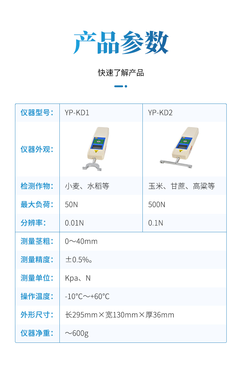 注:KD1型專用于測量小麥、水稻等.KD2型專用于測量玉米、甘蔗、高粱等。