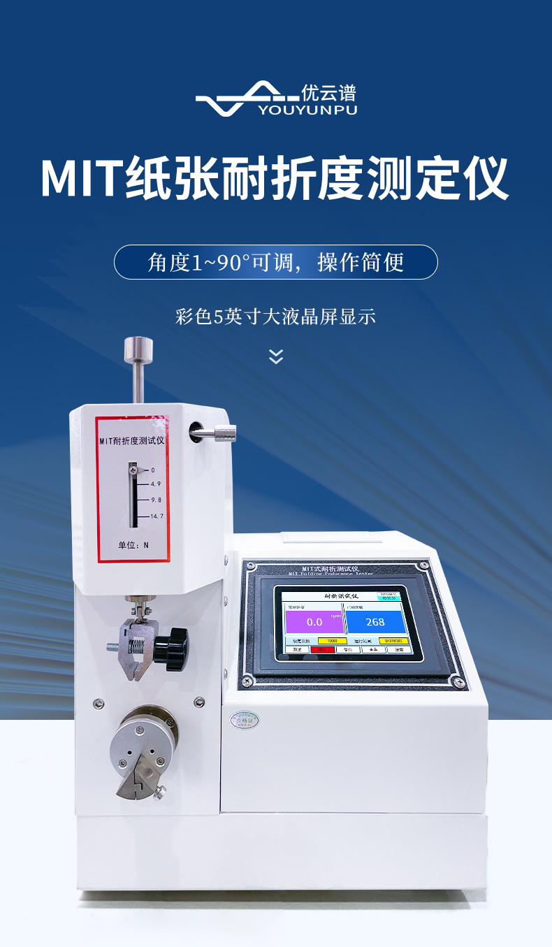 MIT紙張耐折度測定儀適用于測定厚度1mm以下的紙張、紙板及其它片狀材料的耐折疊疲勞強度,符合ISO5626、GB/T2679.5標準中有關規(guī)定。造紙、包裝、科研及產品質量監(jiān)督檢驗等行業(yè)和部門理想的試驗設備。